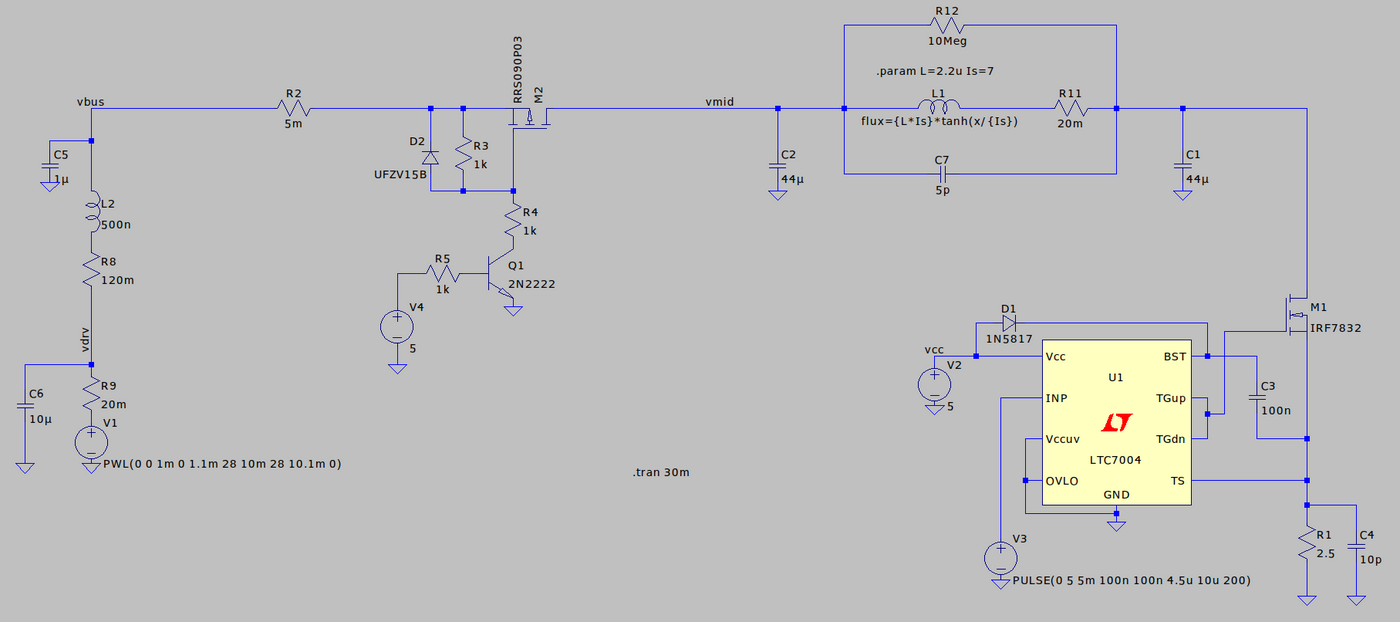 La scelta dei mosfet è fondamentale per ridurre la potenza dissipata, per semplificare il sistema ho scelto di usare uno switching high-side, mentre per ridurre le perdite sul mosfet ho deciso di usare un canale N. I mosfet canale N hanno resistenza di canale minore e minore carica di gate, quindi permettono di minimizzare sia le perdite di conduzione che le perdite di commutazione. Il problema è che usare un mosfet a canale n in configurazione high side richiede un driver fatto apposta.